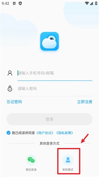 2、点击页面底部的“单机模式”,进入无需注册即可快速体验的设备连接流程。