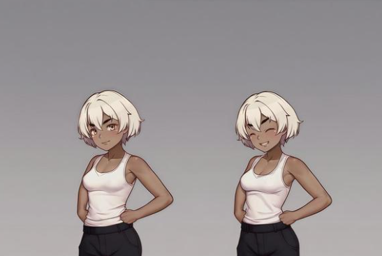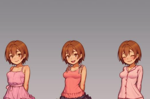 着装:穿几乎无法包裹F罩杯胸部的无袖上衣(常意外暴露),配敞扣蓝色短裤追求舒适;