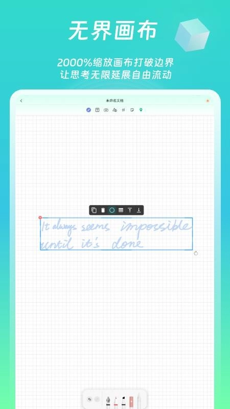 1、创新融合涂鸦与文本记录功能,突破传统笔记工具的局限,借助流畅的手写引擎精准捕捉压感笔迹的细微变化,打造自然流畅的书写体验。