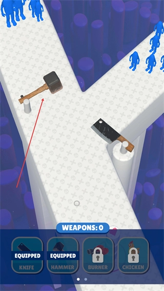 1、在场景里找到HAMMER武器并拾取,把它装备到武器栏,为抵御蓝色敌人做好准备。