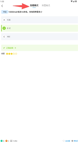 3、在界面确认“答题模式”,完成题目后系统会自动显示正确答案与解析。