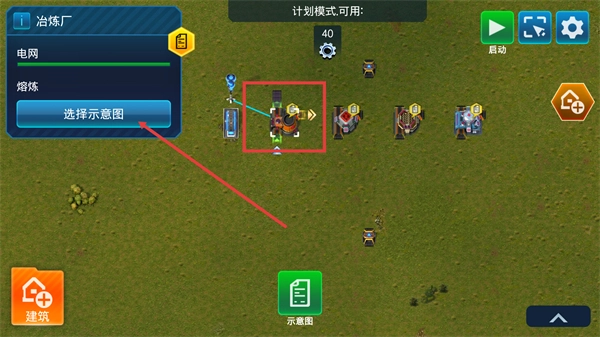 2、进入【冶炼厂】界面后,点击左侧【选择示意图】按钮,可对冶炼设备的生产方案进行配置。