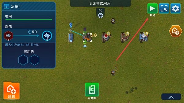 4、完成示意图配置后,点击界面右上角的【启动】按钮,即可让冶炼设备按照配置开始生产。