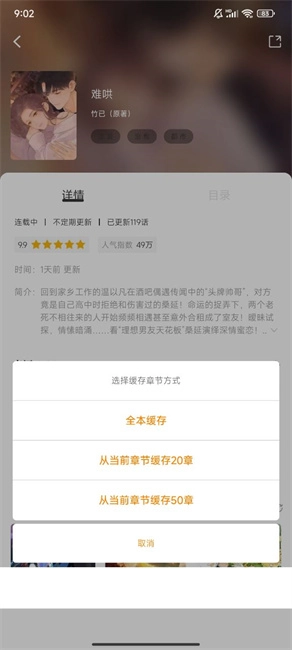 支持将漫画章节一键缓存到本地。