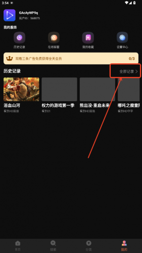 5、在个人中心可以查看观看历史,继续未看完的剧。