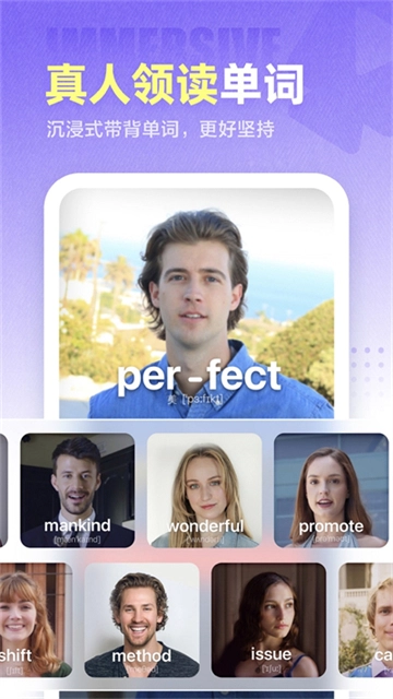 万词王是一款实用的英语口语学习平台,由完美语言(北京)科技有限公司开发。它借助好莱坞专业演员的真人实景领读与精心制作的课程视频,帮助用户深入掌握单词的发音和用法,从而快速提升整体英语水平。此外,平台配备智能AI发音功能,可实时为用户解析发音问题,并根据用户的实际水平提供专项练习,助力用户更精准地巩固和提升单词与口语能力。