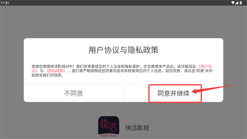 1、启动应用后,请阅读用户协议与隐私政策,确认后点击同意并继续。