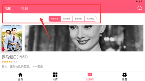 4、进入找影视页面,可按分类与排序方式查找目标内容。