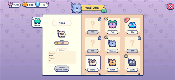 2、每位访客有独特性格与偏好,如浣熊爱捣乱、乌龟喜安静,满足需求可积累好感。