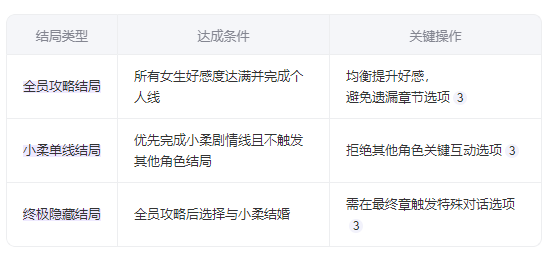 达成条件: 优先完成小柔剧情线且不触发 其他角色结局