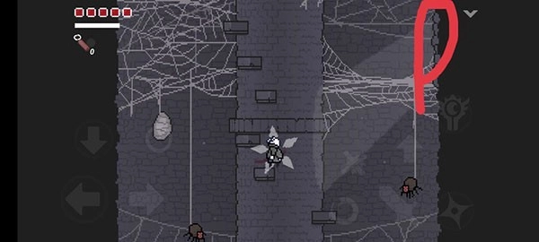 之后,直接前往塔的位置,先别急着爬塔。在塔的最右侧,有几个蛛丝茧,按O键就能进入隐藏路线,到达骷髅所在的房间。