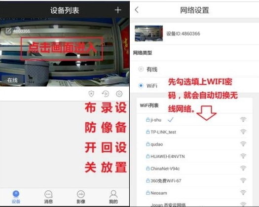 4、成功创建设备密码后,进入设备设置-网络设置,点击WIFI列表中家里的WIFI名称,输入WIFI密码,待WIFI切换成功后,即可拔掉网线。