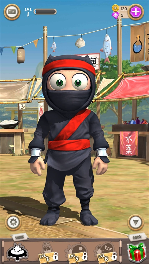 4、当笨拙的忍者达到特定等级后,就能更换不同颜色的服装,这些不同的颜色对应着不同的级别,这是专门为忍者准备的奖励。