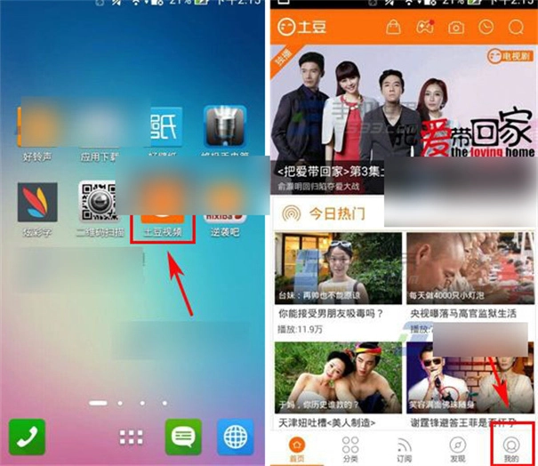 1、先安装土豆视频应用,安装完成后打开它,进入首页后点击右下角的【我的】选项。