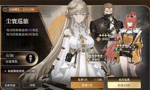 1、在「尘寰巡旅」检索池中,累计检索次数达到30次时,可以自选一位常驻5星角色。