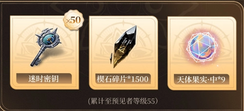 1、奖励:迷时密钥×50、楔石碎片×1500、天体果实·中×9