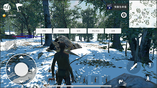 2、进入游戏之后,通过使用左边的轮盘控制角色的移动,右边控制人物的动作,瞄准射击,跳、蹲和翻滚。
