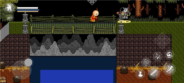 2、蓄力劈棍、棍花闪避等颇具特色的战斗动作,力图在像素风格下保留战斗的节奏感。