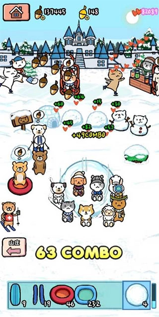 多种可爱的动物角色,像兔子、熊、企鹅之类的,都会前来光顾你的滑雪场。