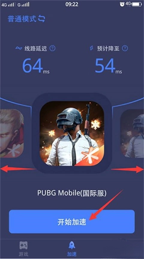 5、左右滑动选择刚刚添加的游戏,点击开始加速。