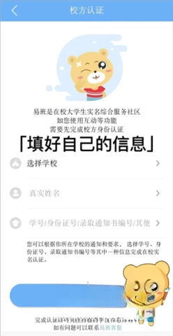 1、对个人账号资料进行完善,填写好所属学校名称以及入学年份后,点击“马上去校方认证”按钮。