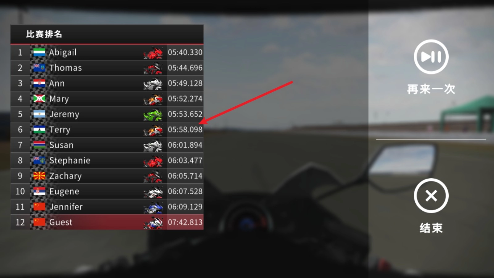 比赛结束后会立即进行排名,最先冲过终点线的选手即为冠军。