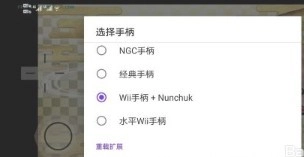 4、要是玩的是wii游戏,用默认的按键设置就可以;但如果是ngc游戏,像《塞尔达传奇》这类,就得调整按键了,不然没法正常操作。具体的调整方法是:用手机触摸上屏幕并向下滑动,此时手机上方会弹出一些图标,点击那个手柄样式的图标,然后选择ngc手柄选项就行。