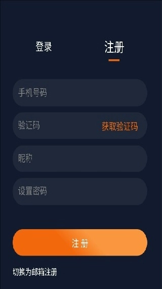3.可选择使用手机号注册并输入对应的验证码及昵称