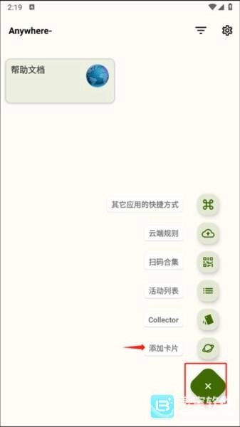 3、云备份:Anywhere-支持使用WebDAV协议备份数据。前往设置–备份和恢复页面来设置云备份账号。以坚果云为例,WebDAV域名一栏填写。https : /ldav.jianguoyun . com/davl , WebDAV用户名一栏填写你的用户名,WebDAV密码一栏则根据服务提供商的要求填写。例如坚果云需要在设置中申请应用密码并填写。当一切数据都填写正确后,点击立即备份即可立即触发备份。您也可以开启自动备份,应用将在卡片有任何改动的情况下,在应用返回退出或者在强行退出应用后下次一重启时自动备份数据。