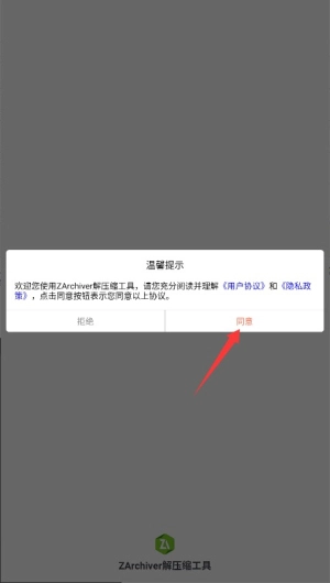 zarchiver正版,1、应用首次启动时,系统会呈现用户协议与隐私政策,阅读完成后点击同意按钮即可进入主界面;