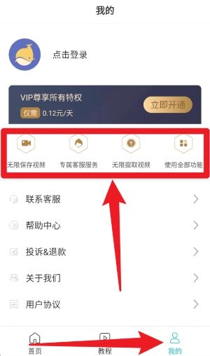 5、进入我的页面后,登录账号即可享受无限保存、提取视频以及专属客服等VIP会员特权服务。