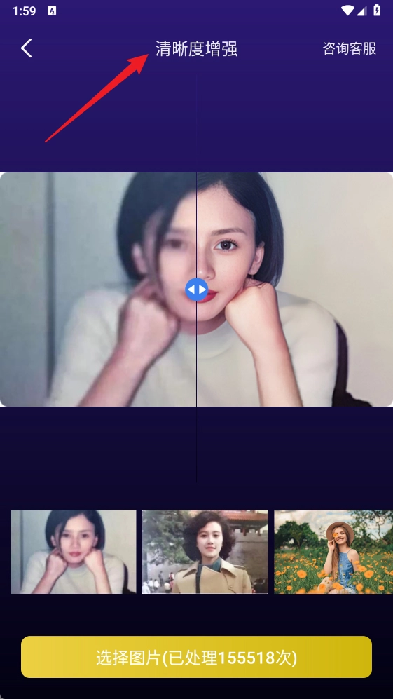 5、在清晰度增强功能中,用户可上传模糊照片,系统将自动提升画质,使人物或物体更加清晰。
