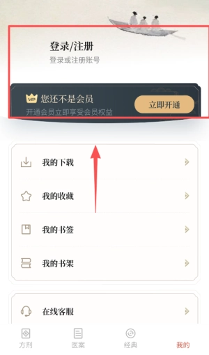 4. 点击底部导航栏的“我的”,即可管理你的收藏与书签。若您尚未登录,系统会提示您注册会员,以便享受更多优惠权益。