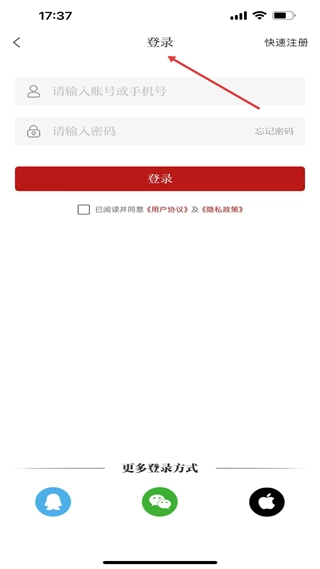 1、打开应用后首先进入登录界面,可通过输入账号或手机号并搭配密码进行登录,也能选择第三方账号登录,登录前需勾选同意用户协议及隐私政策。