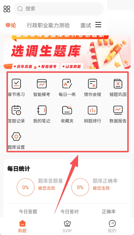 1、题库练习功能覆盖行测、申论等多个考试科目,每个科目下进一步细分章节与知识点,用户能够依据自身薄弱环节,挑选对应的内容开展强化训练。