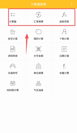 3、若需要进行汇率换算或者单位转换,可以在工具区找到对应的功能,选择原始单位和目标单位后输入数值就能得到结果。