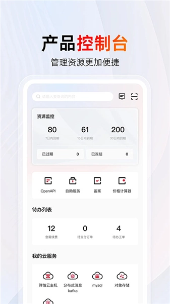 3、支持云产品的监控和管理,实时掌握云产品状态。
