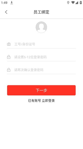 3、员工注册,只需要填写工号或者身份证号,然后设置密码;