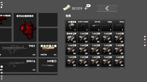 3、接下来在仓库里点击空白的格子,就能开始配备武器奔赴战场了。