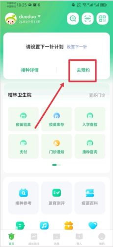1、打开,在首页中点击去预约