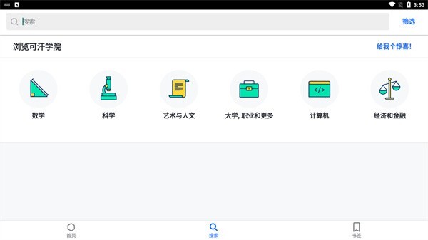 双击打开可汗学院,点击搜索来进行查找;