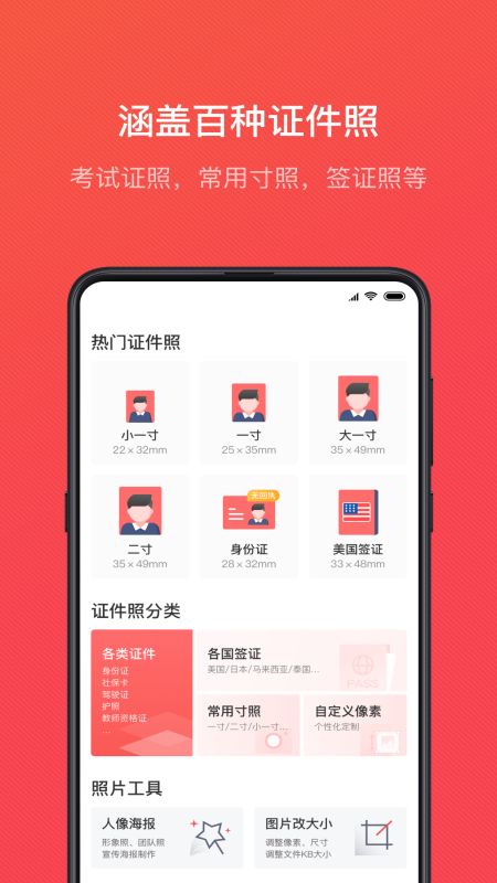 二代身份证、宝宝照片、居住证、社保卡、护照、港澳通行证、普通寸照、驾驶证、求职简历等各类专业证件照片均支持制作,还能根据需求自由调整尺寸呢~