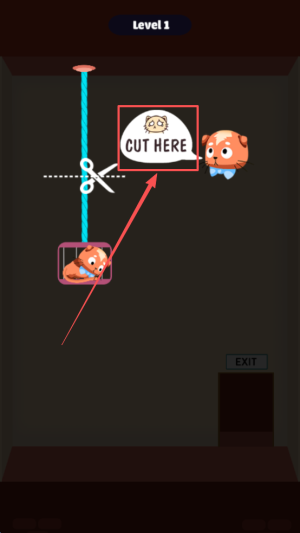 2、进入关卡:在Level1界面出现“CUT HERE”提示,直接点击“EXIT”旁的入口开始挑战。