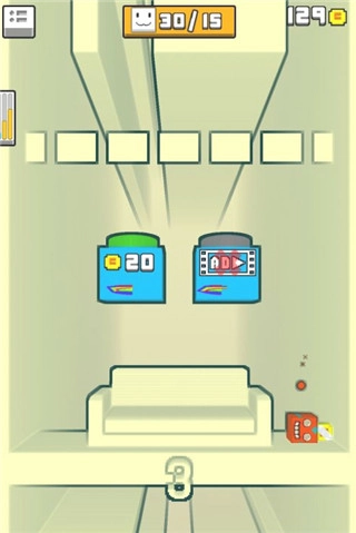 注意我们头上两个机关是给我们加成的,可以保护我们免受一次伤害,但是每一次都需要越来越多的金币,非常昂贵,所以可以不用就不要用,因为我们是可以复活的;