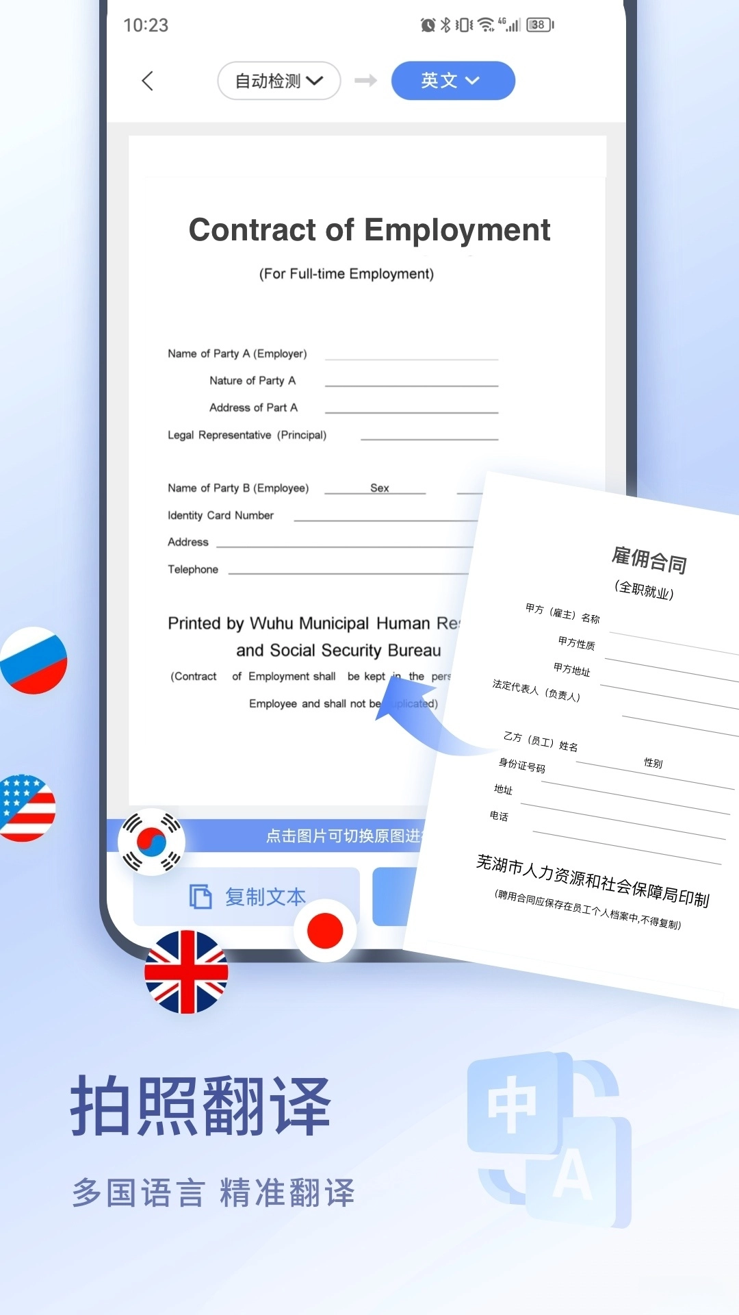 多语言拍图翻译的突出优势在于:可对中文、英语、日语等多个国家的语言进行扫描翻译和拍照翻译。不管是学习外语资料的过程中,还是出国旅行交流的时候,碰到语言障碍,都能迅速且精准地完成翻译,消除语言隔阂,让沟通和学习更加流畅。