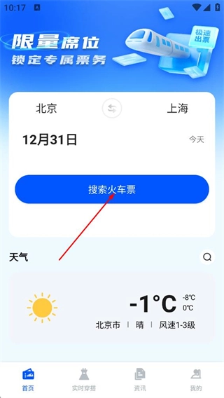 火车订票助手是专注于火车出行的综合服务平台,集精准班次查询、出行计划定制、目的地天气预报及旅游生活贴士于一体,实时同步车次动态与余票信息,帮助用户科学规划行程,提前了解天气状况以合理准备行李和衣物,丰富实用的出行知识可随时查阅,让火车旅行规划更高效,旅途更顺畅省心。
