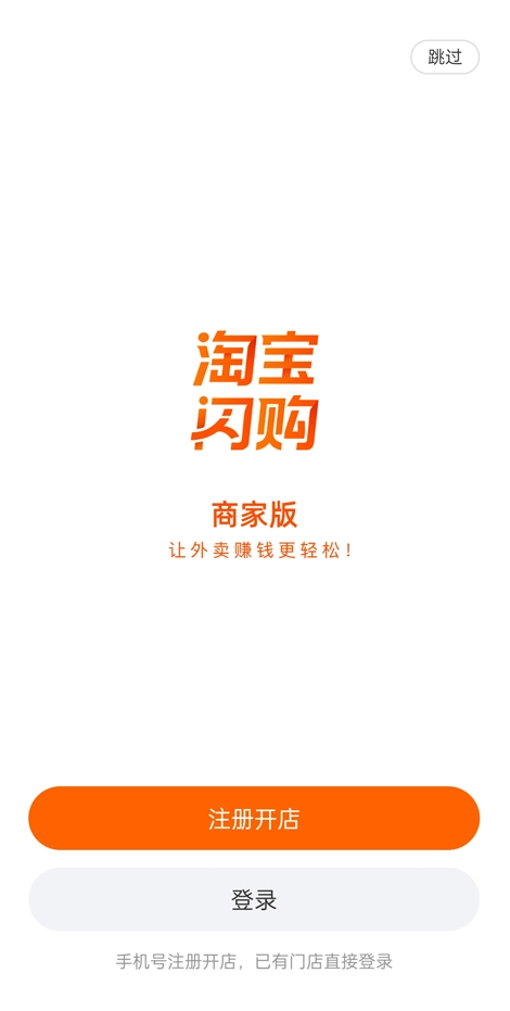 1、打开淘宝闪购商家版App后,第一步先点击首页的“注册开店”入口