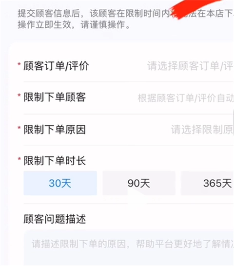 2、添加限制顾客