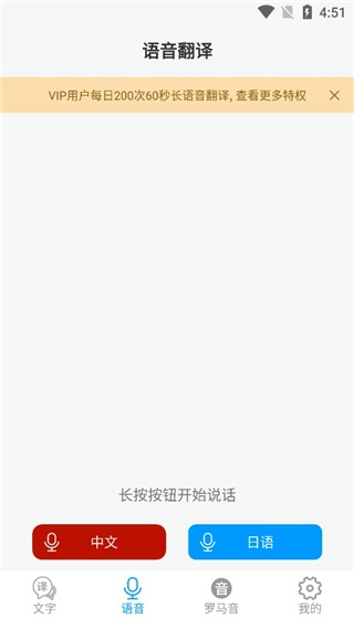 6、选择语音功能,长按对应语言按钮说话即可进行翻译。
