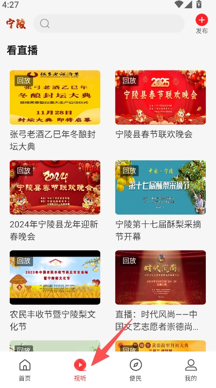 2、视听板块对直播回放进行了整合,分类清晰,方便浏览,缩短了查找本地活动内容的时间,提高了内容获取的效率。